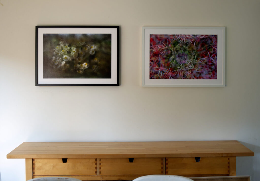 Exactly one year after my first visit of the blooming cousin garden, some of these same images returned as exhibition, inside and outside the house, in the greenhouse and on the meadow.