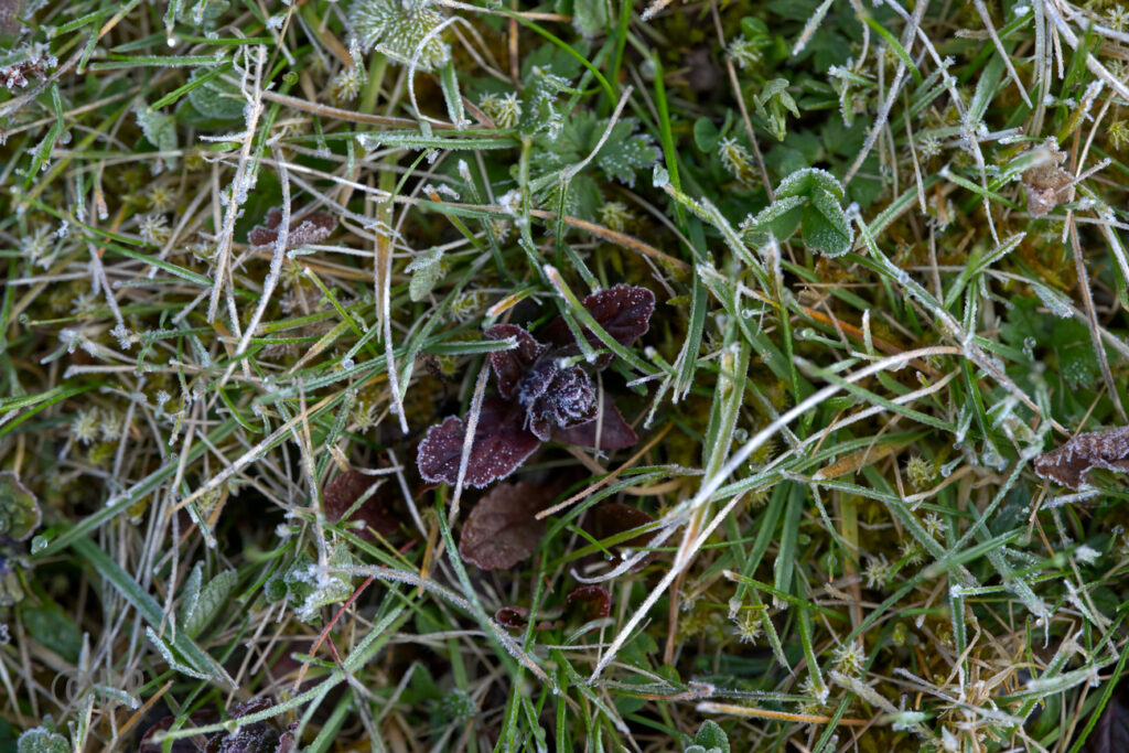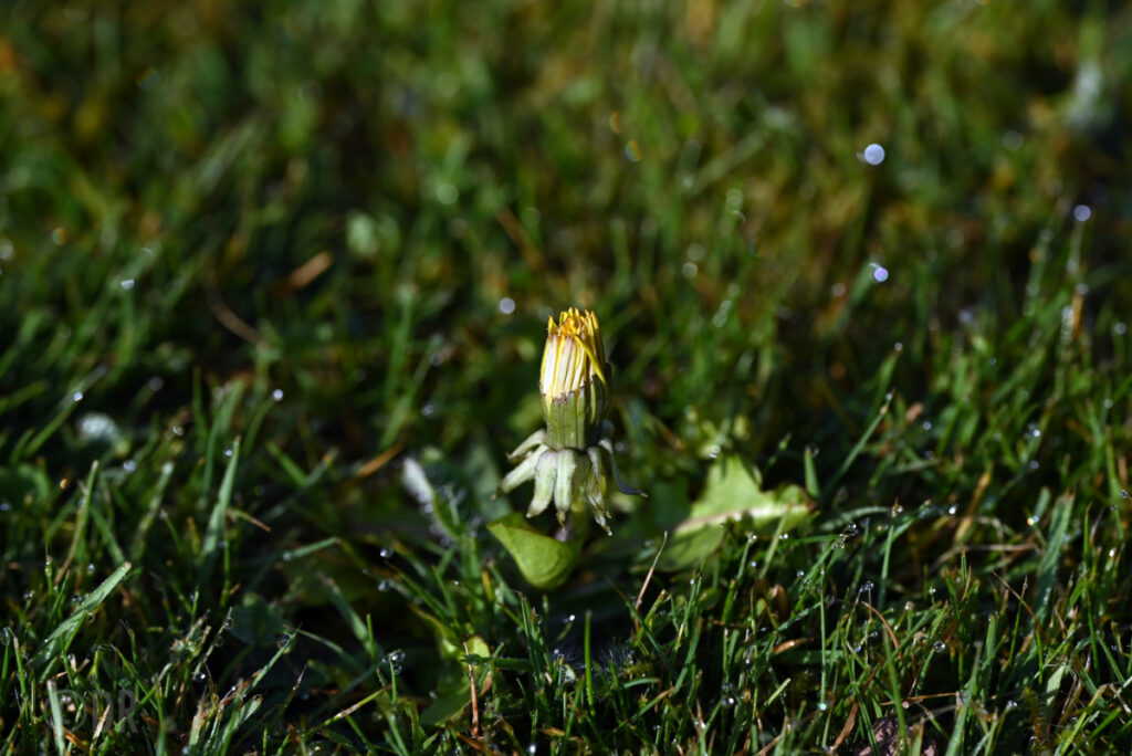 Mid-April nights can be chilly in Nordhessen, so the lawn was covered with frozen dew drops which slowly melted once the sun reached them.