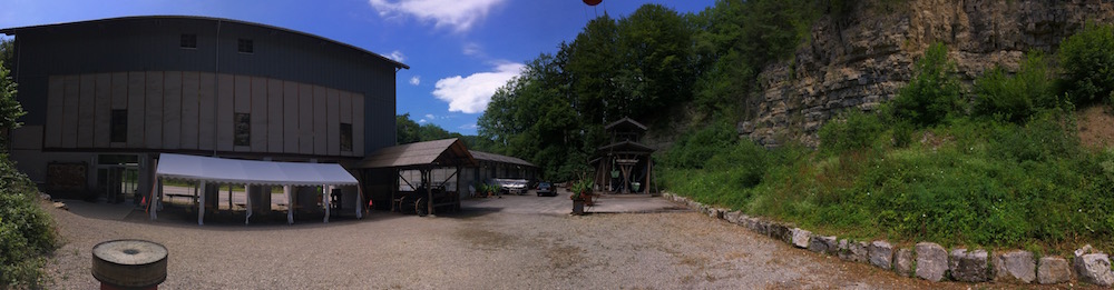 An old cement and gravel works building in the hills of Basel-Land was converted into a local museum. The raw concrete walls and metal fittings of its high silos, with glass windows in the floor covering the old gravel filling latches, offer a wonderful environment for all kinds of artwork.